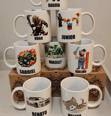 Canecas personalizadas para presentear ou usar no dia a dia.